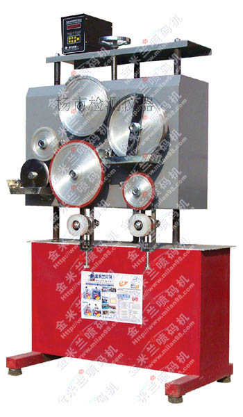 ■ TM-7000 ■ 仿喷码印字 + 仿喷码油墨计米 生产线 :≥ 4mm 控制系统 :ATMEL 电脑芯片、数码显示、监视计米器 双色喷码:支持 白墨技术:支持 计米功能:计米盘计米器、仿喷码效果计米、计米范围: 1-100 日期功能:可选配 印字间距:字轮直径 160MM 、印字间距 1-2 次 / 米 印字效果:仿喷码印字 + 仿喷码计米、先印字后计米 耗材费用:油墨、费用较低